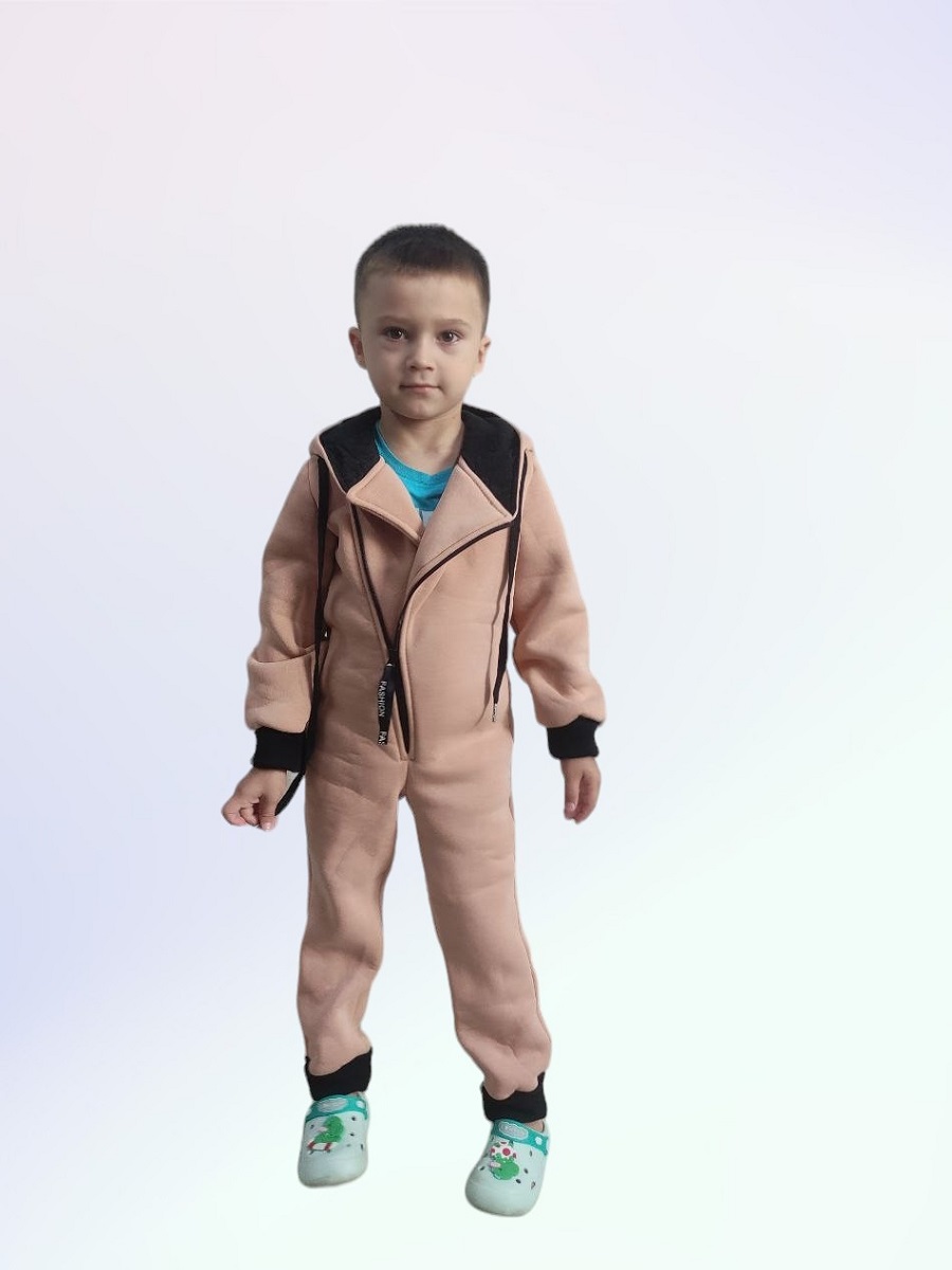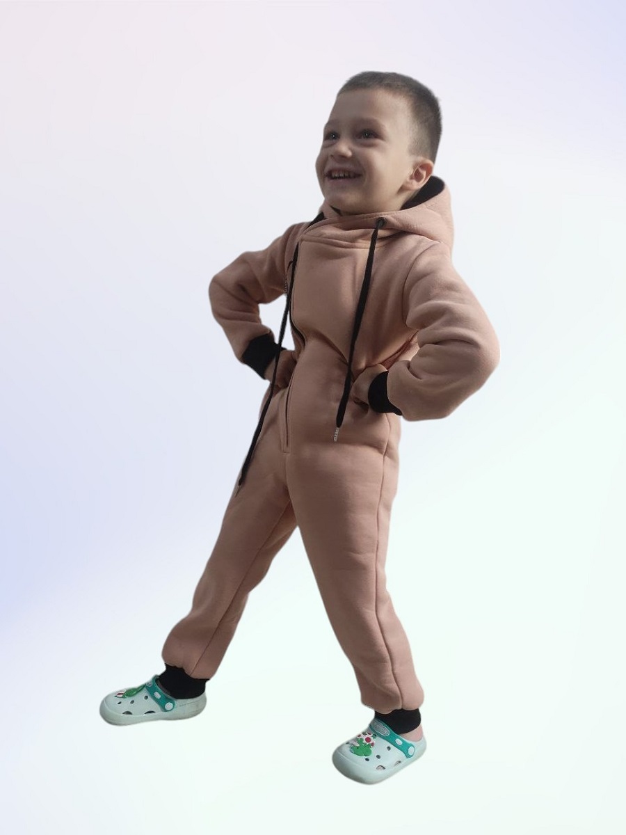 Комбинезон с капюшоном, с открытыми ножками, застёжка на молнии. Капюшон на подкладке, декорирован шнурком.