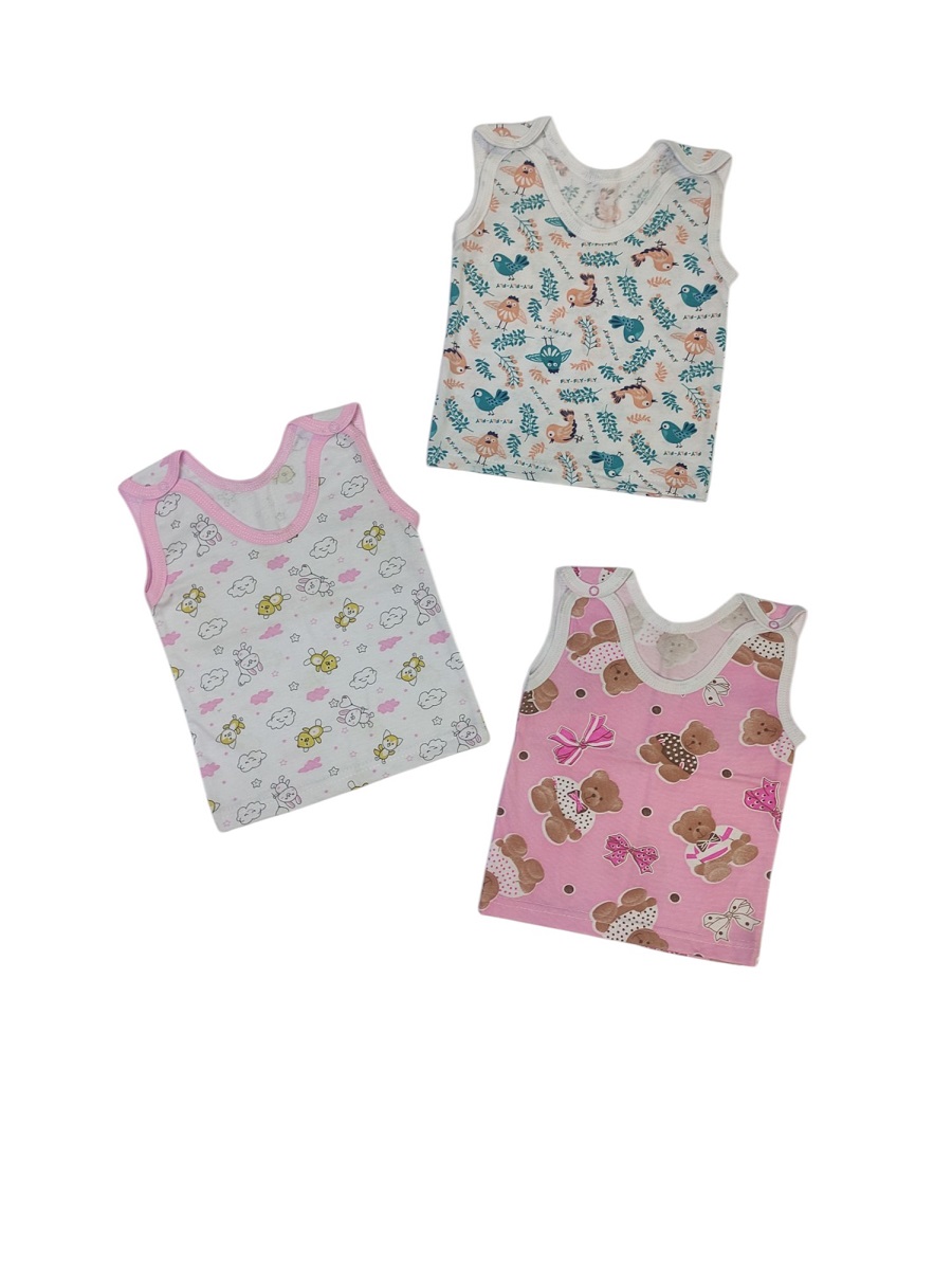 Маечка выполнена из 100% хлопка (кулирка), с кнопочками на плечиках.